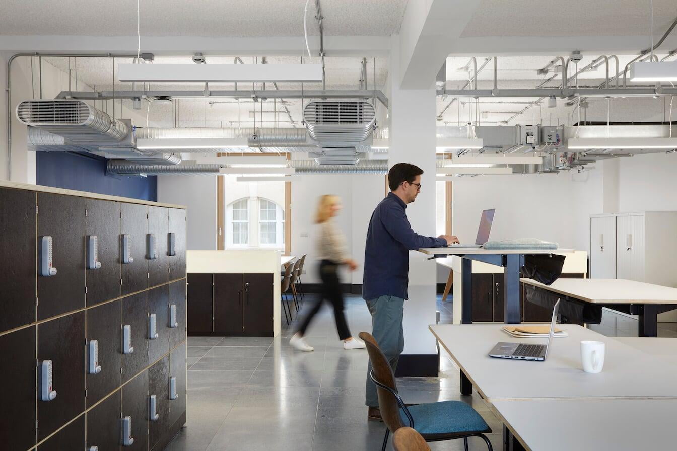 BDP upgraded and reused the lights in the transformation of a 1930s telephone exchange in the £12 million project to create a new headquarters for the Cambridge Institute for Sustainable Leadership.