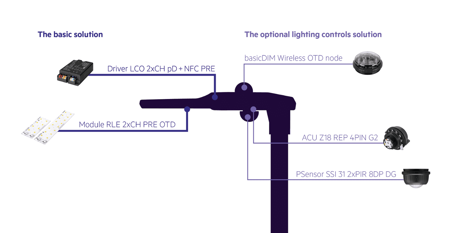 The standard solution can be enhanced by choosing lighting controls. Such as basicDIM Wireless outdoor node and PIR sensor.